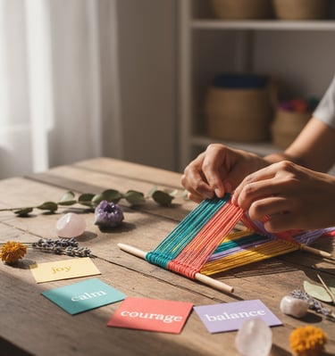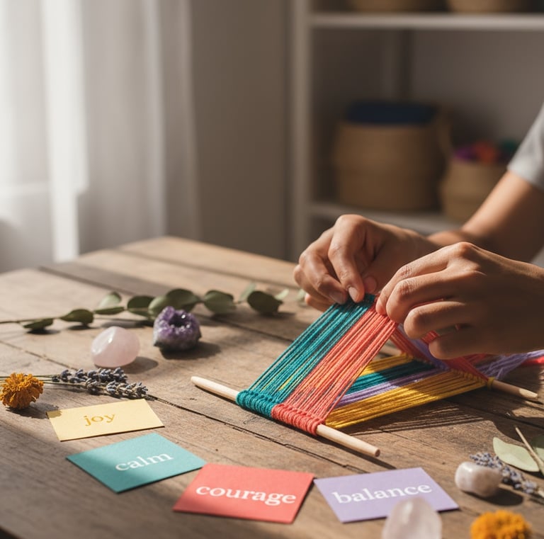 A blend of Tibetan-inspired symbolism, natural crystals, and the quiet art of weaving.