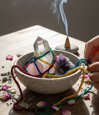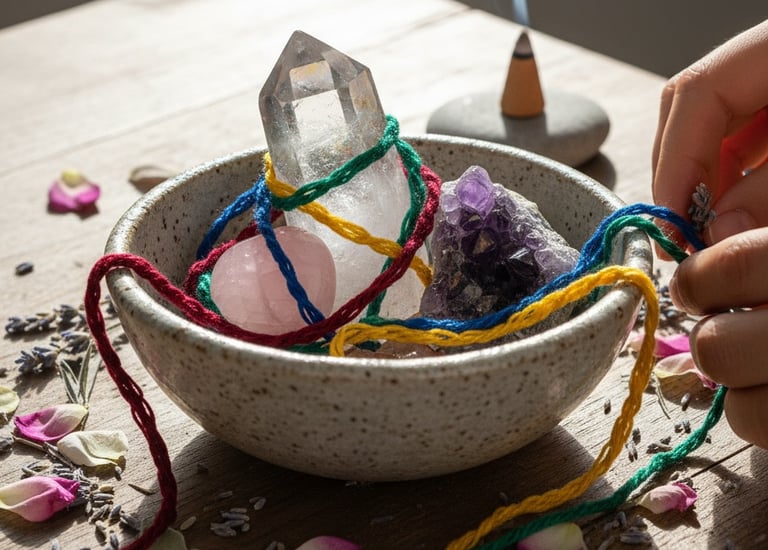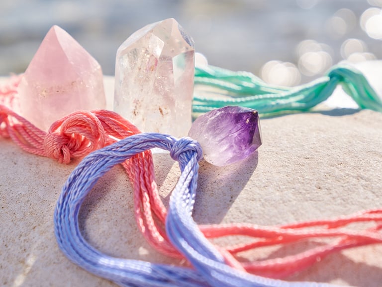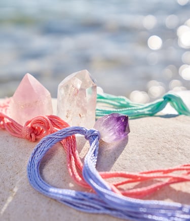 Crystals are nature’s emotional healers, paired perfectly with your woven cords. Rose quartz (pink) dissolves loneliness, citrine (yellow) dispels fatigue, aquamarine (blue) calms anxiety, tiger’s eye (brown) boosts confidence, amethyst (purple) clears mental fog. As you wear them, the crystals cleanse negative energy, while the cords ground your emotions — a harmonious dance of color, texture, and spiritual renewal